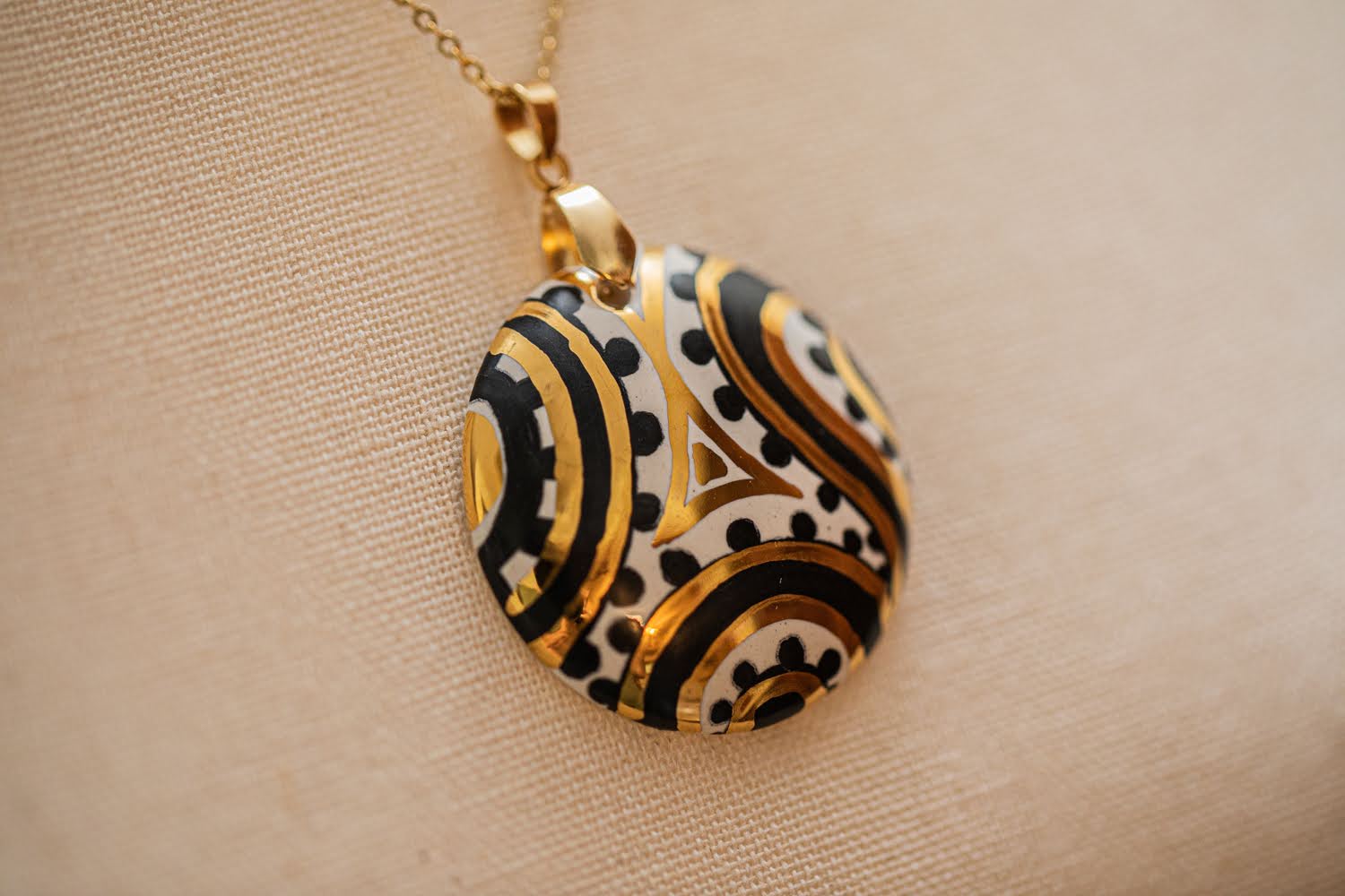 Linea LUXURY Black and Gold Swirl Small Round Necklace with Pure Gold Insert