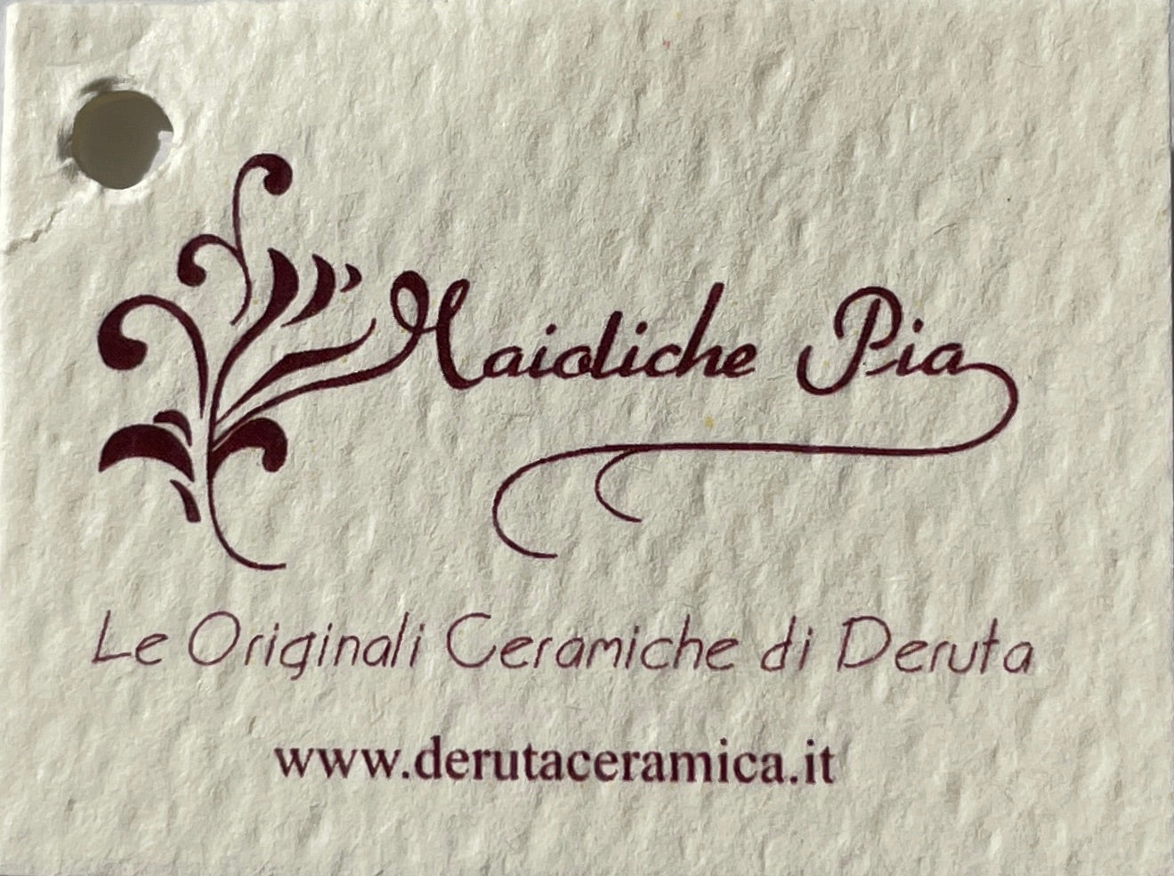 Her love of art and Maiolica ceramics brought Pia to Deruta, the pulsing heart of this beautiful ancient tradition. She learned the skillful craft under the diligent teaching of Master Romano Ranieri who shared with her secrets, techniques and mysteries of Majolica.