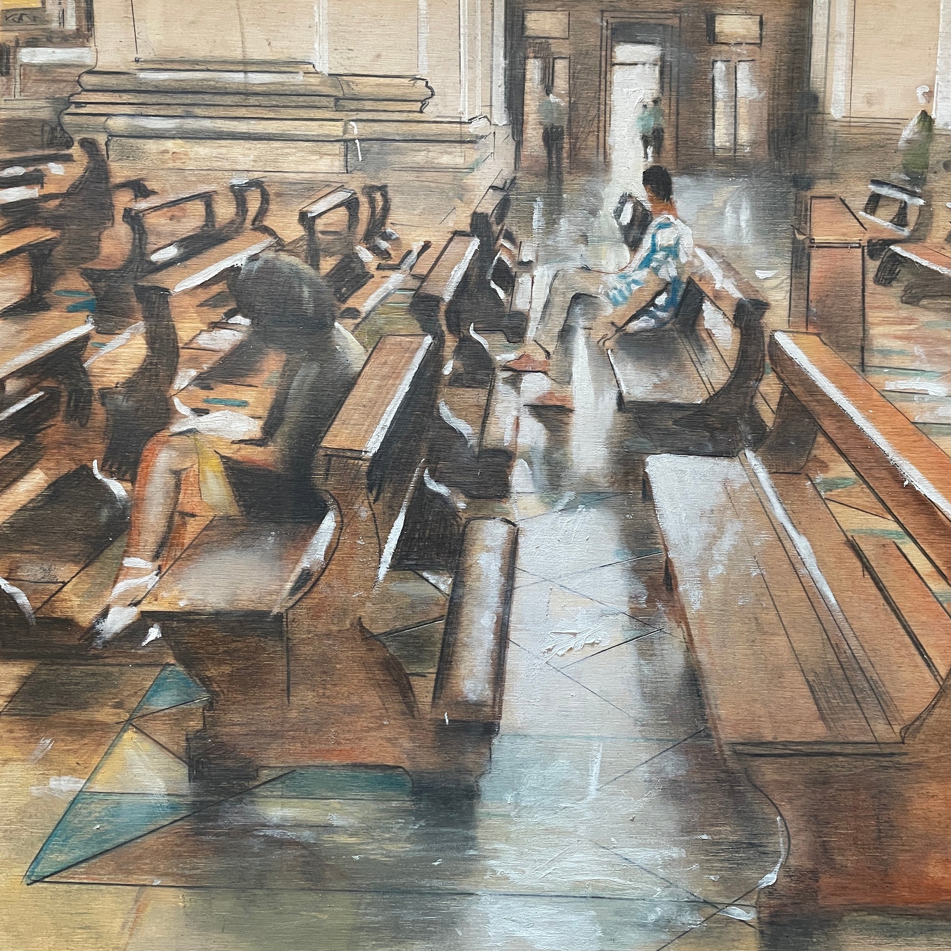 One-of-a-kind, original, signed oil on Poplar wood.