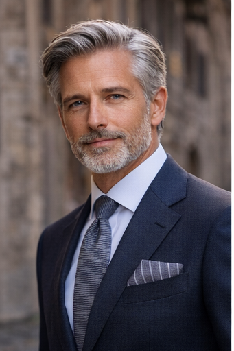 A timeless grey silk pocket square featuring elegant fine striping for a tailored, architectural look. Crafted in Italy from pure silk and finished with hand-rolled edges, this piece offers understated sophistication that pairs effortlessly with navy, charcoal, or lighter suiting.