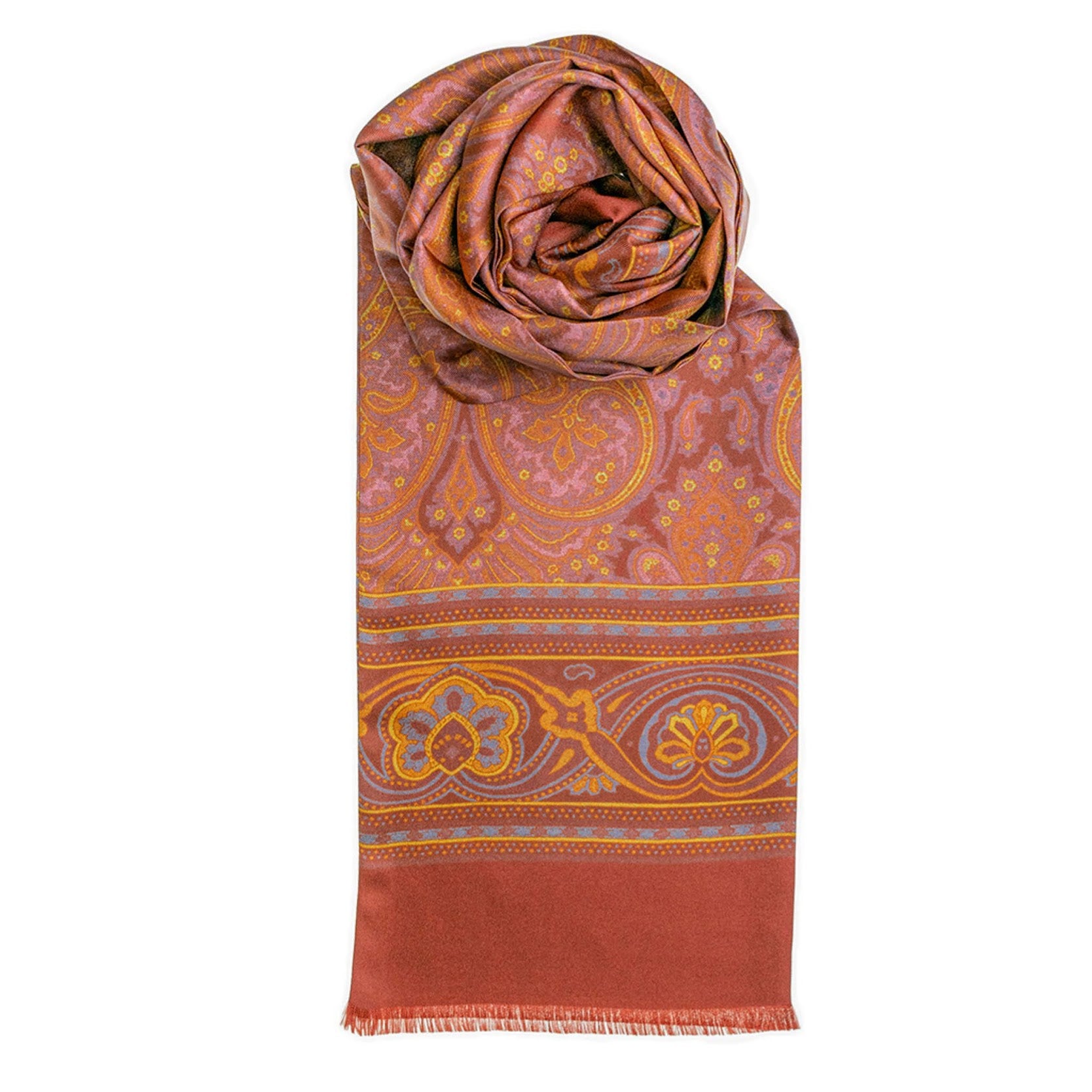Feel effortlessly elegant in this unisex Italian 100% Pure Silk Tubular Scarf in our Red and Orange Paisley Design.