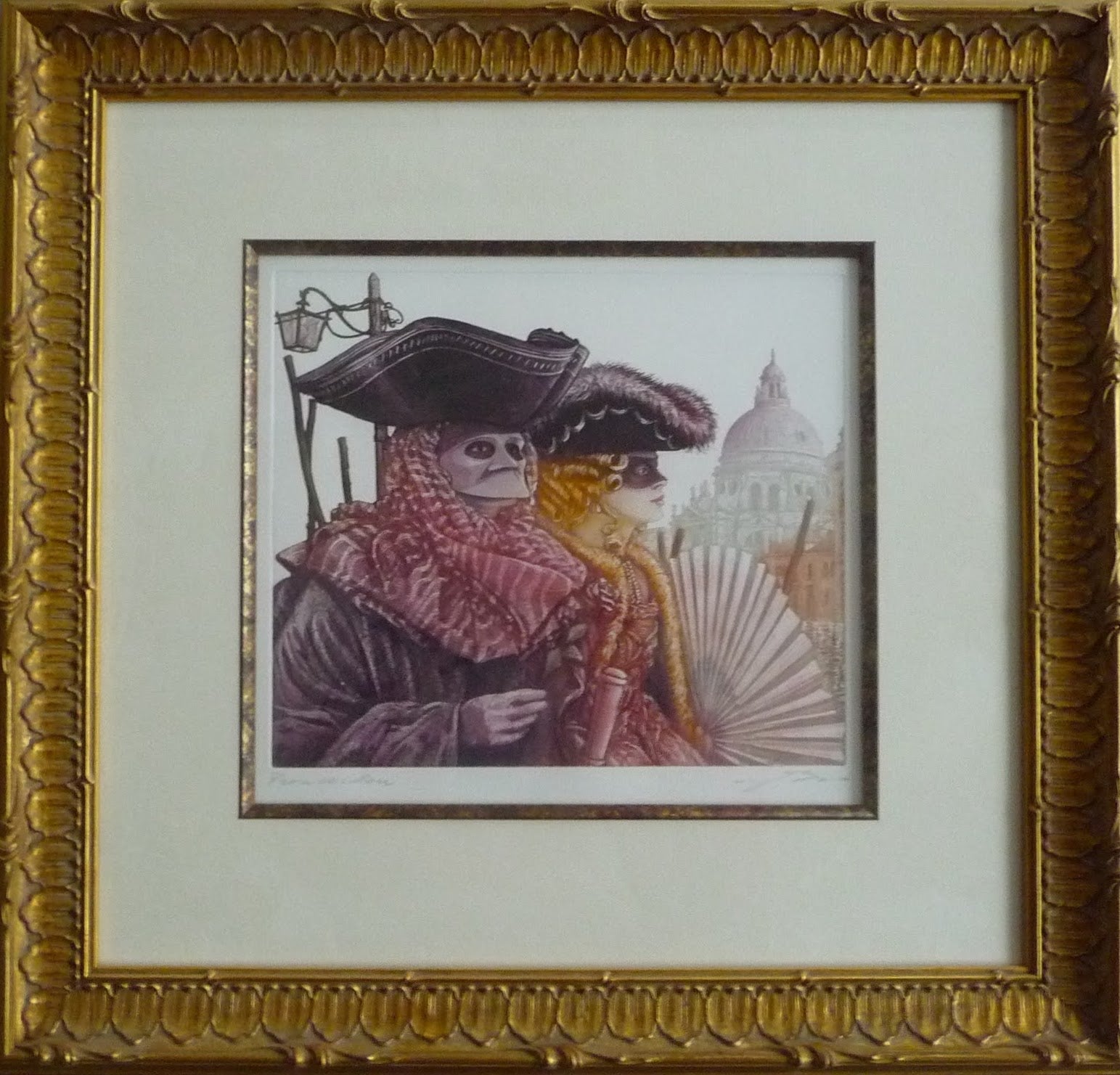 Venice, Italy, Couple at Carnival on Canal, framed (also available unframed)
