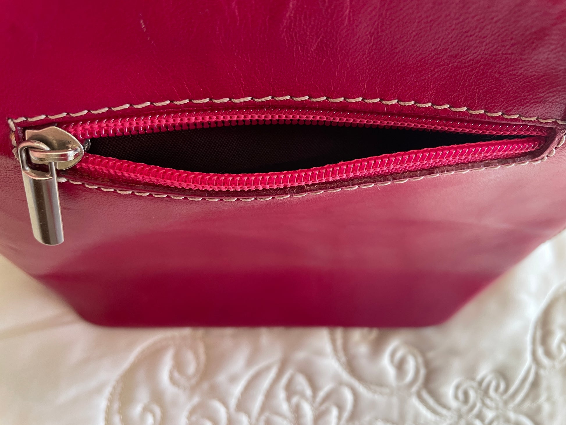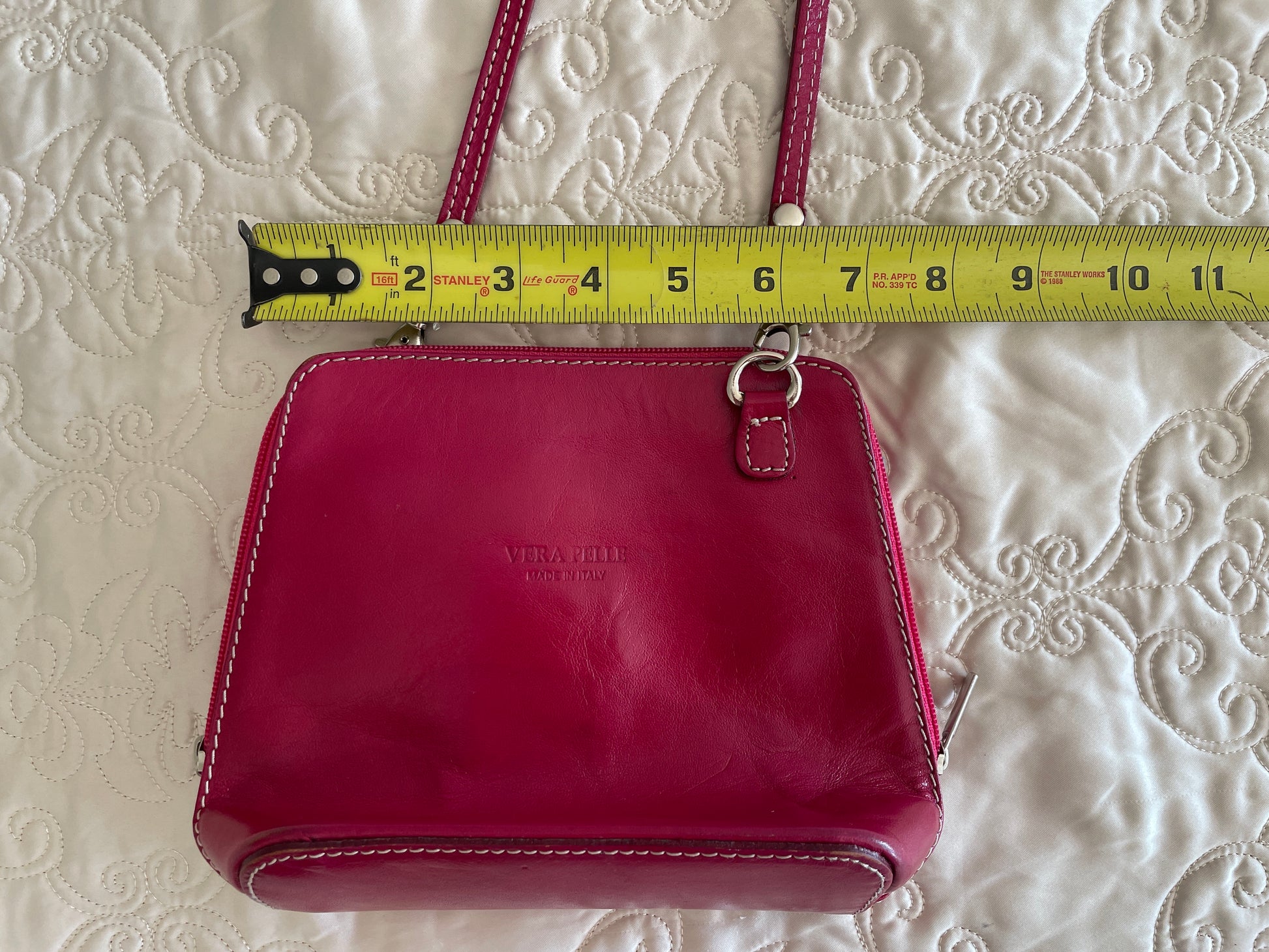 Mercata Imports Mercatina offers this beautiful authentic Made in Italy VERA PELLE Fuchsia Italian leather cross-body bag in a rich fuschia color.