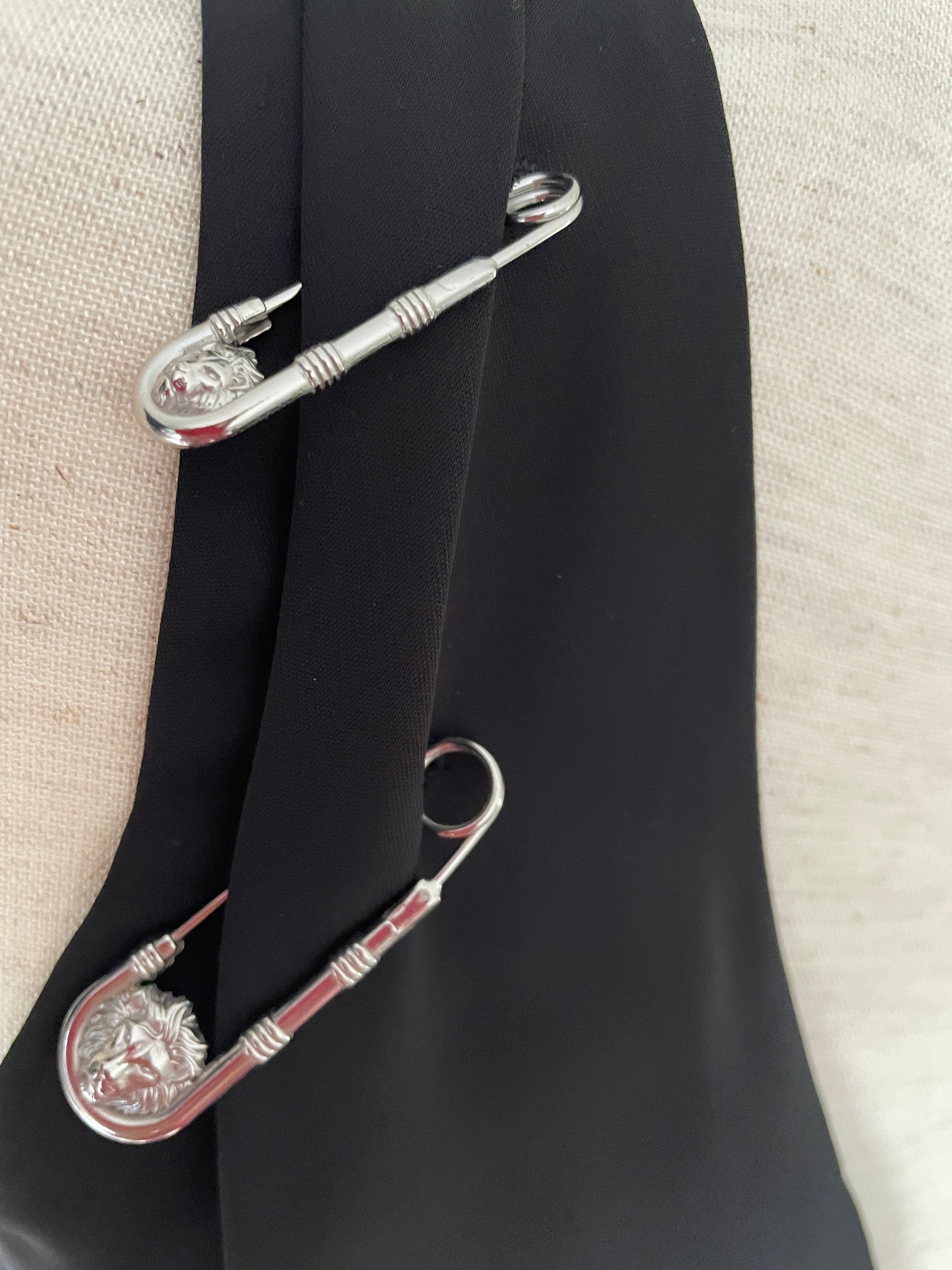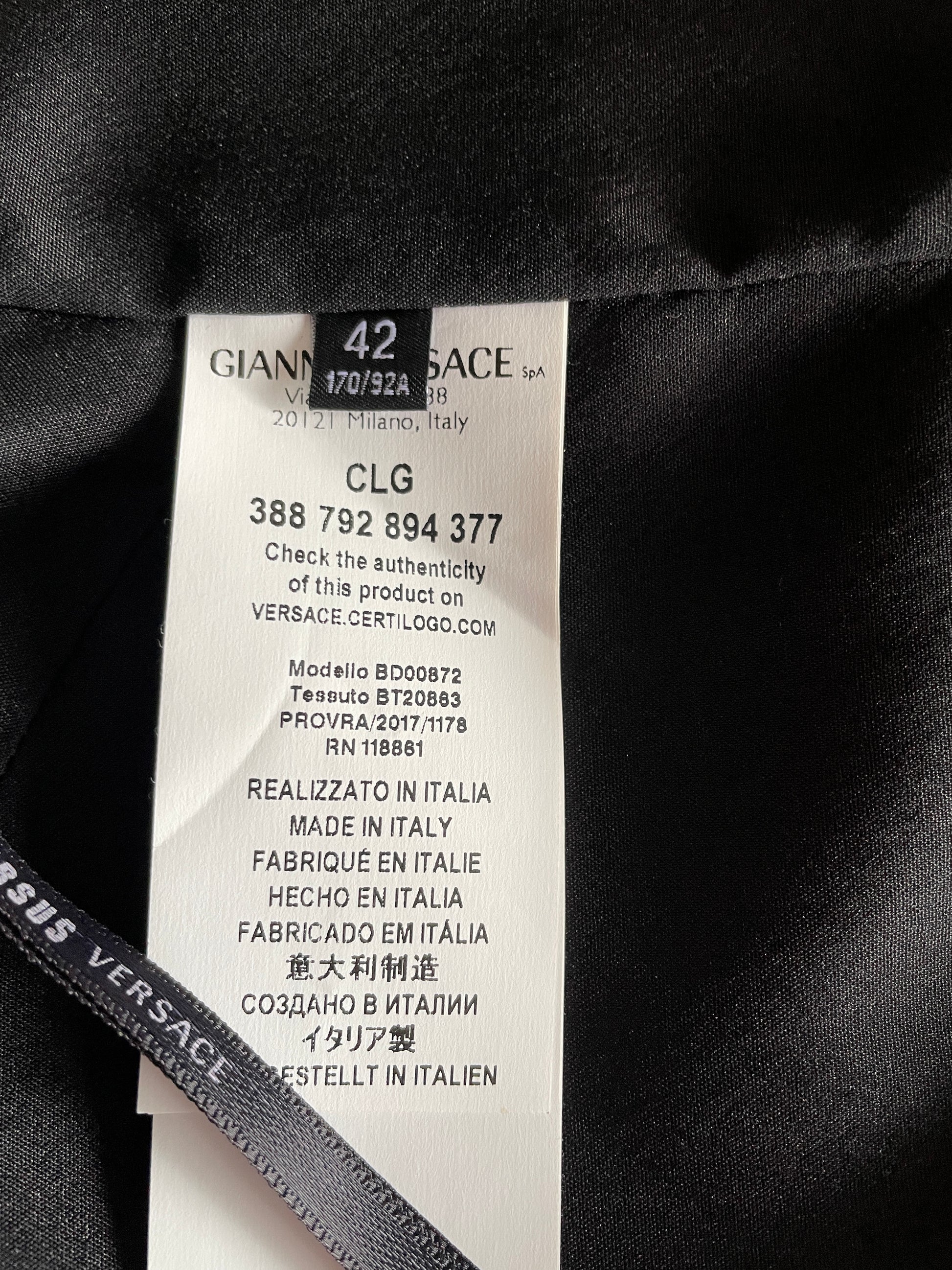 Mercata Imports Mercatina offers this beautiful VERSUS VERSACE Little Black Dress, Size 42 EU (6 US) with two silver signature lion pins on the shoulder.